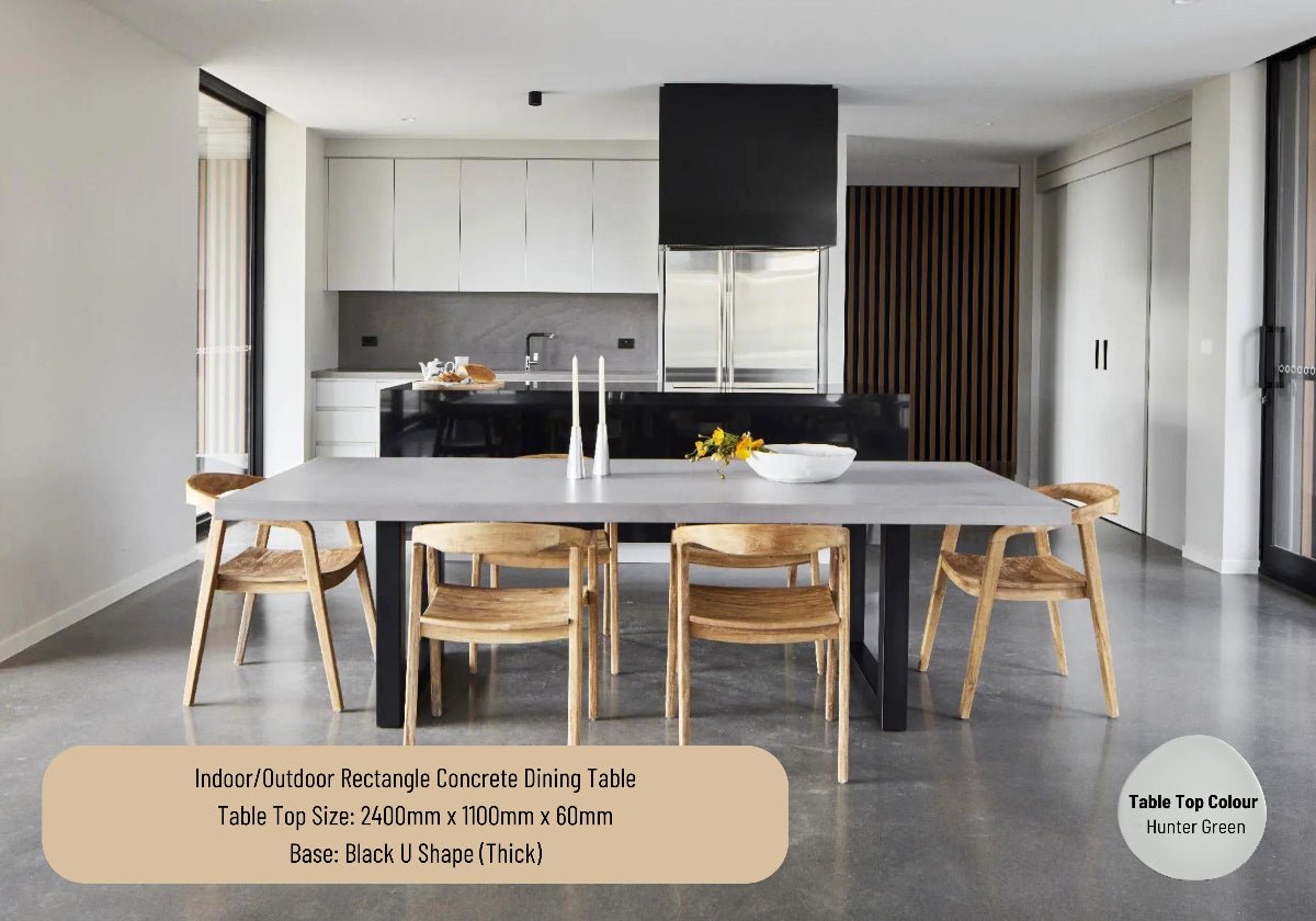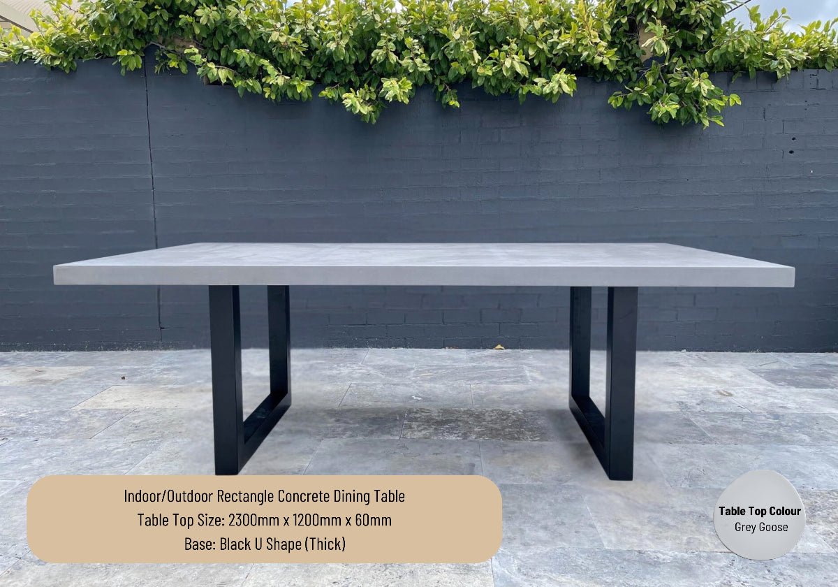 Indoor or Outdoor Rectangle Concrete Dining Table - Black or White U Shape (Thick)