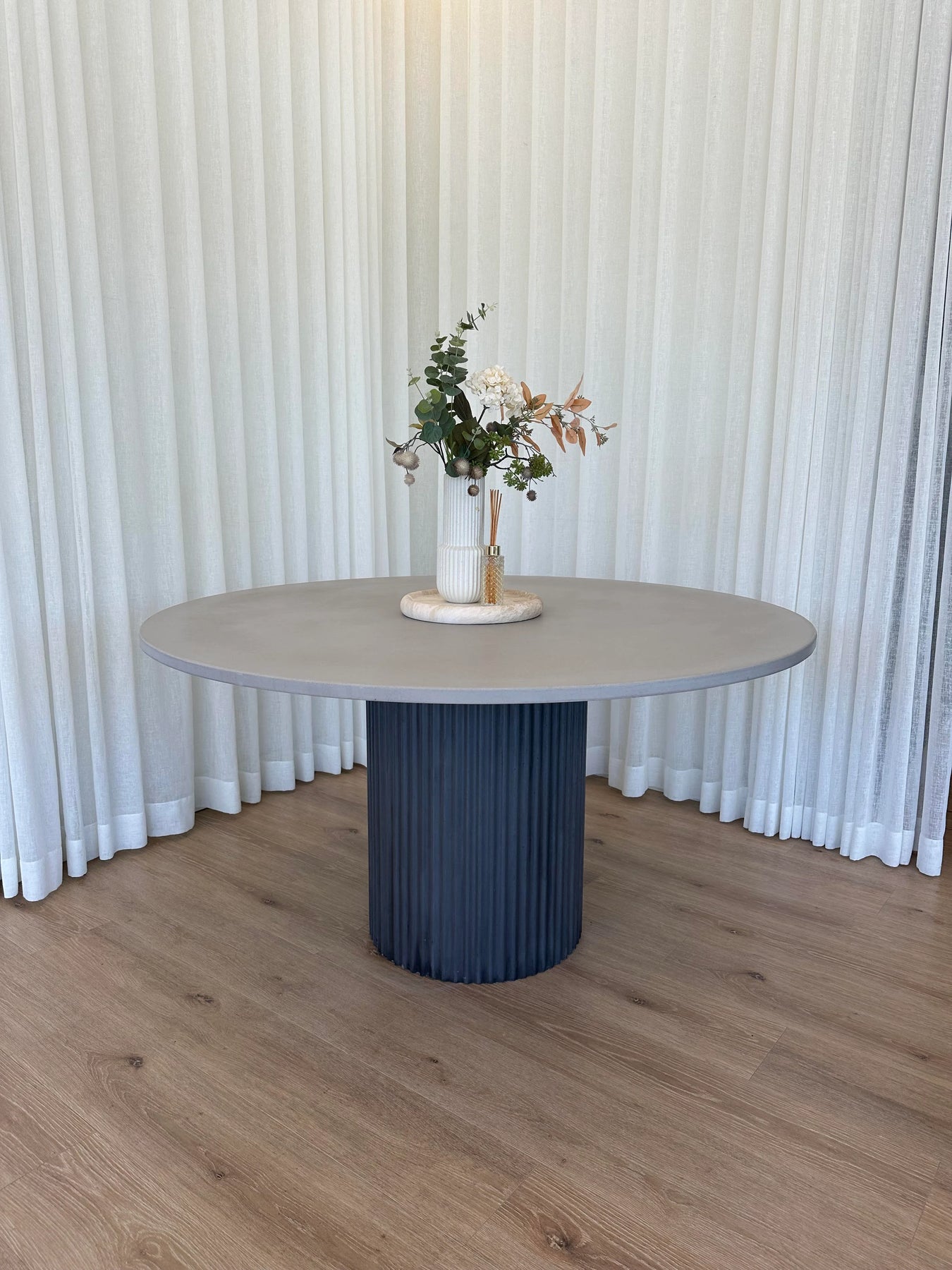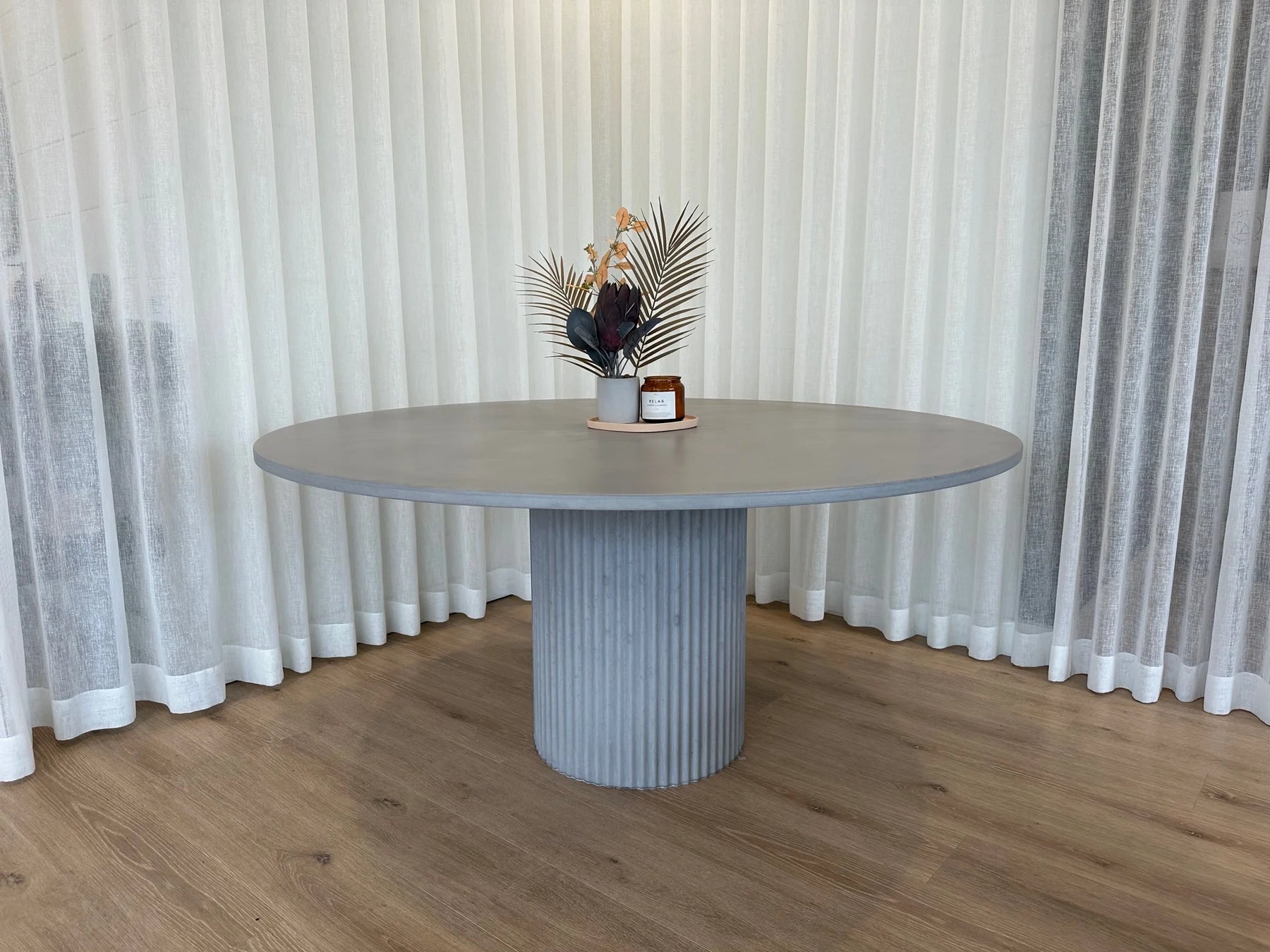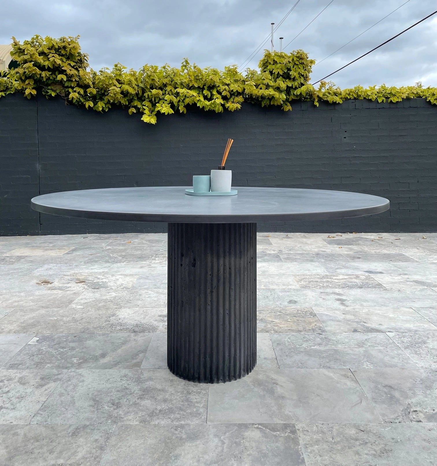Indoor or Outdoor Round Concrete Dining Table - Fluted Concrete Base