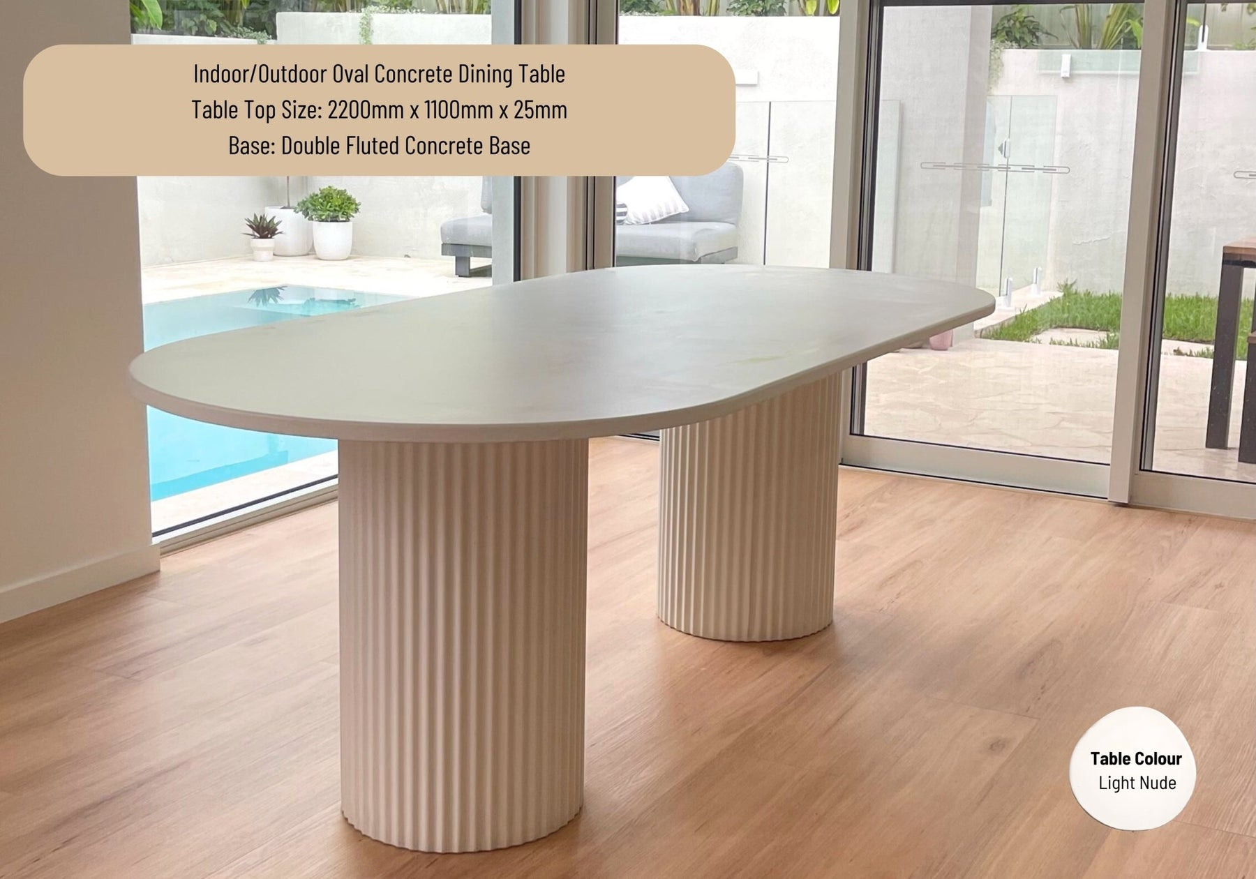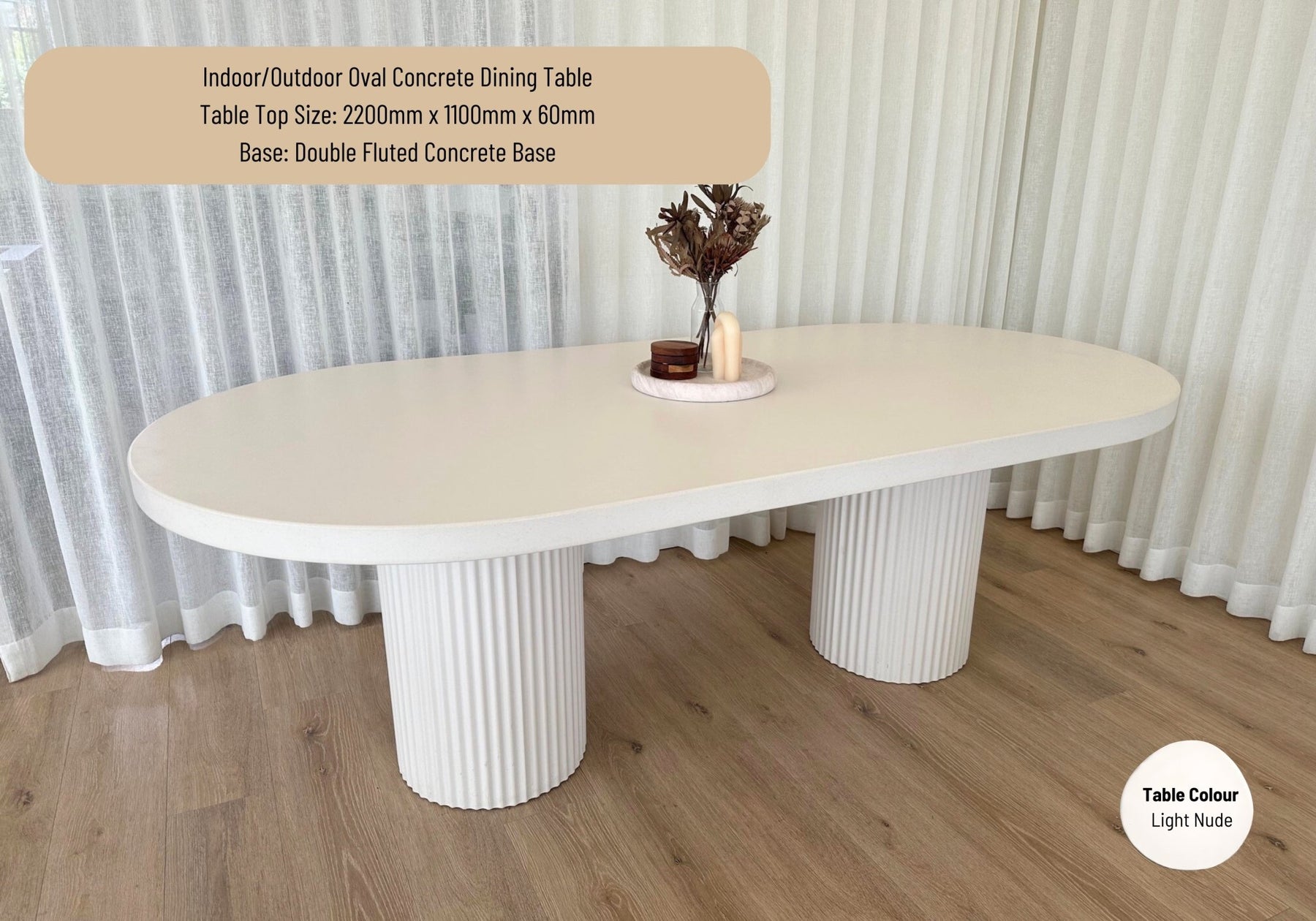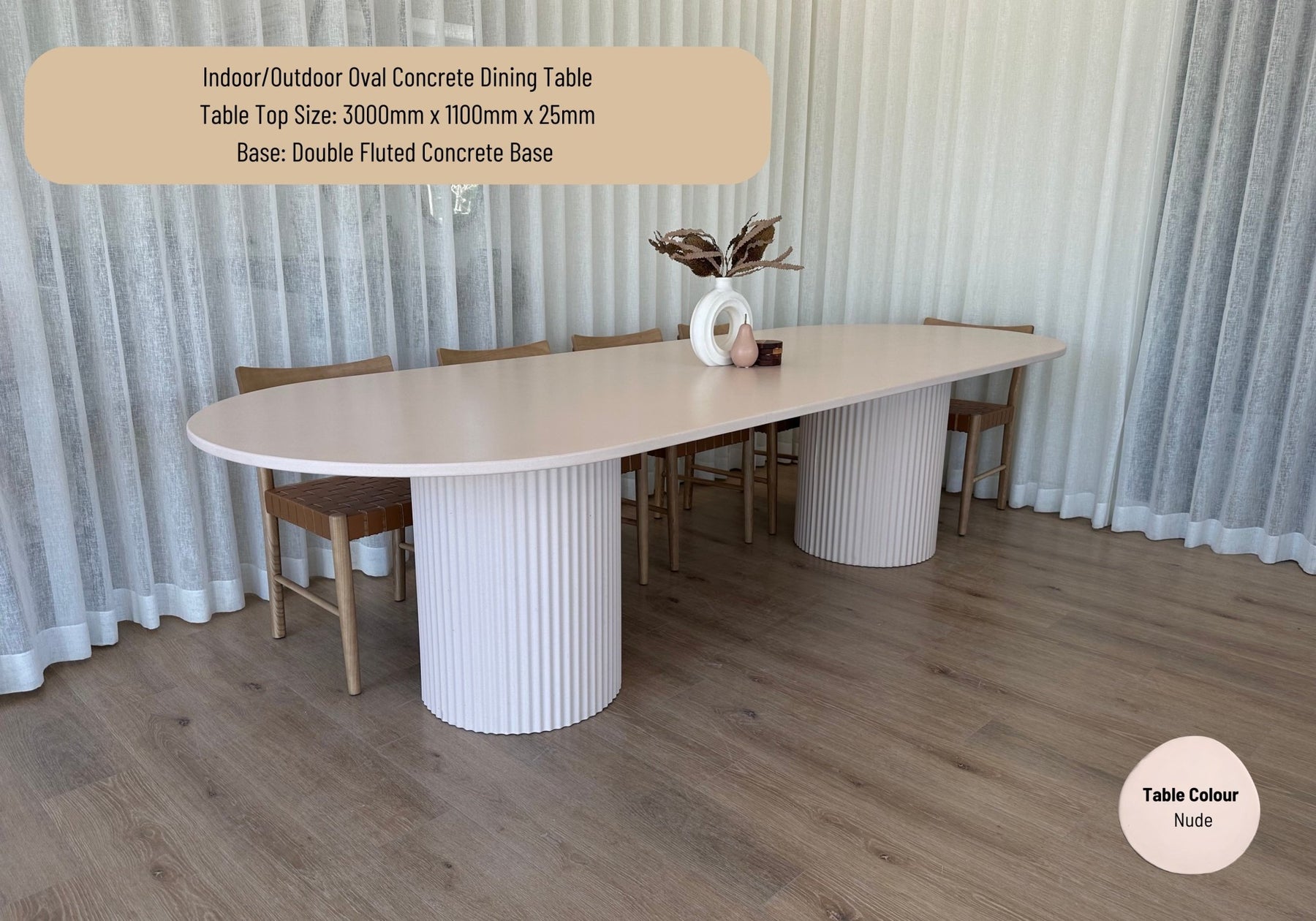 Indoor or Outdoor Oval Concrete Dining Table - Fluted Double Concrete Base