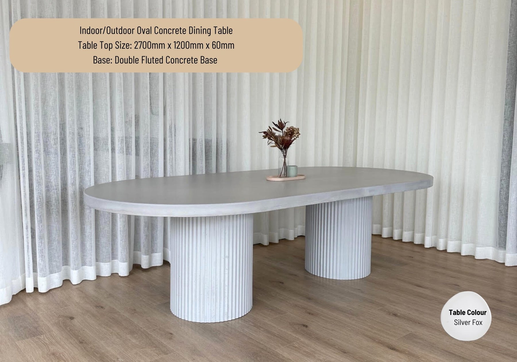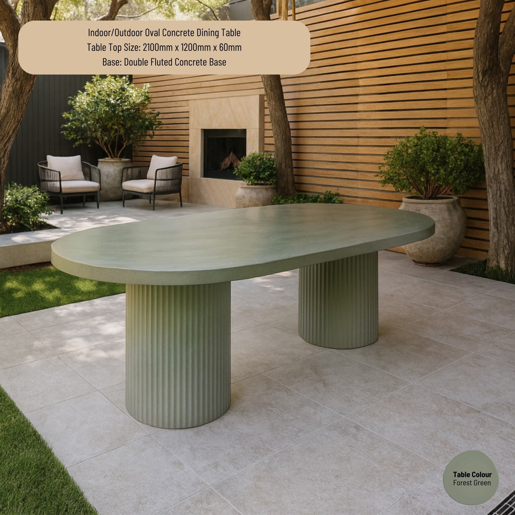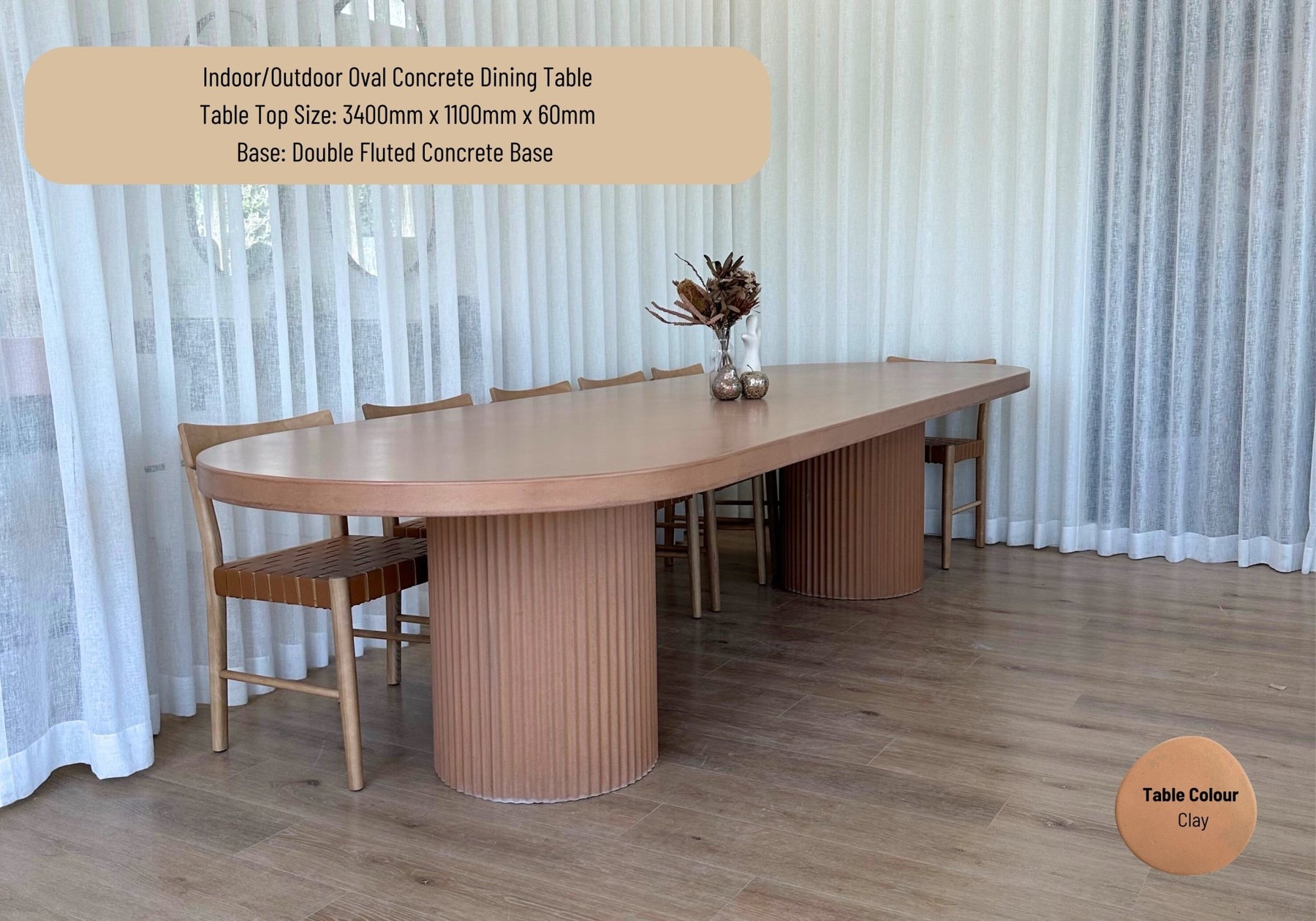 Indoor or Outdoor Oval Concrete Dining Table - Fluted Double Concrete Base