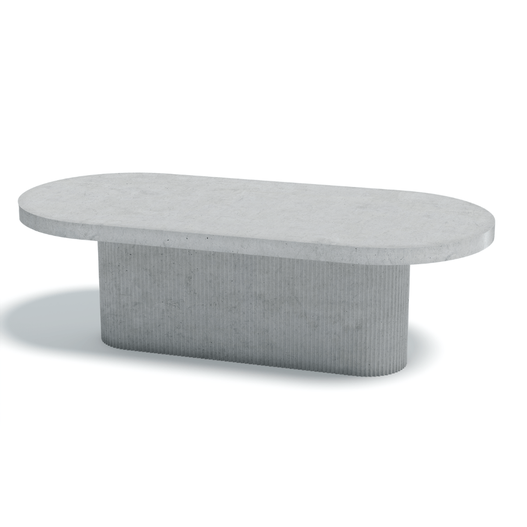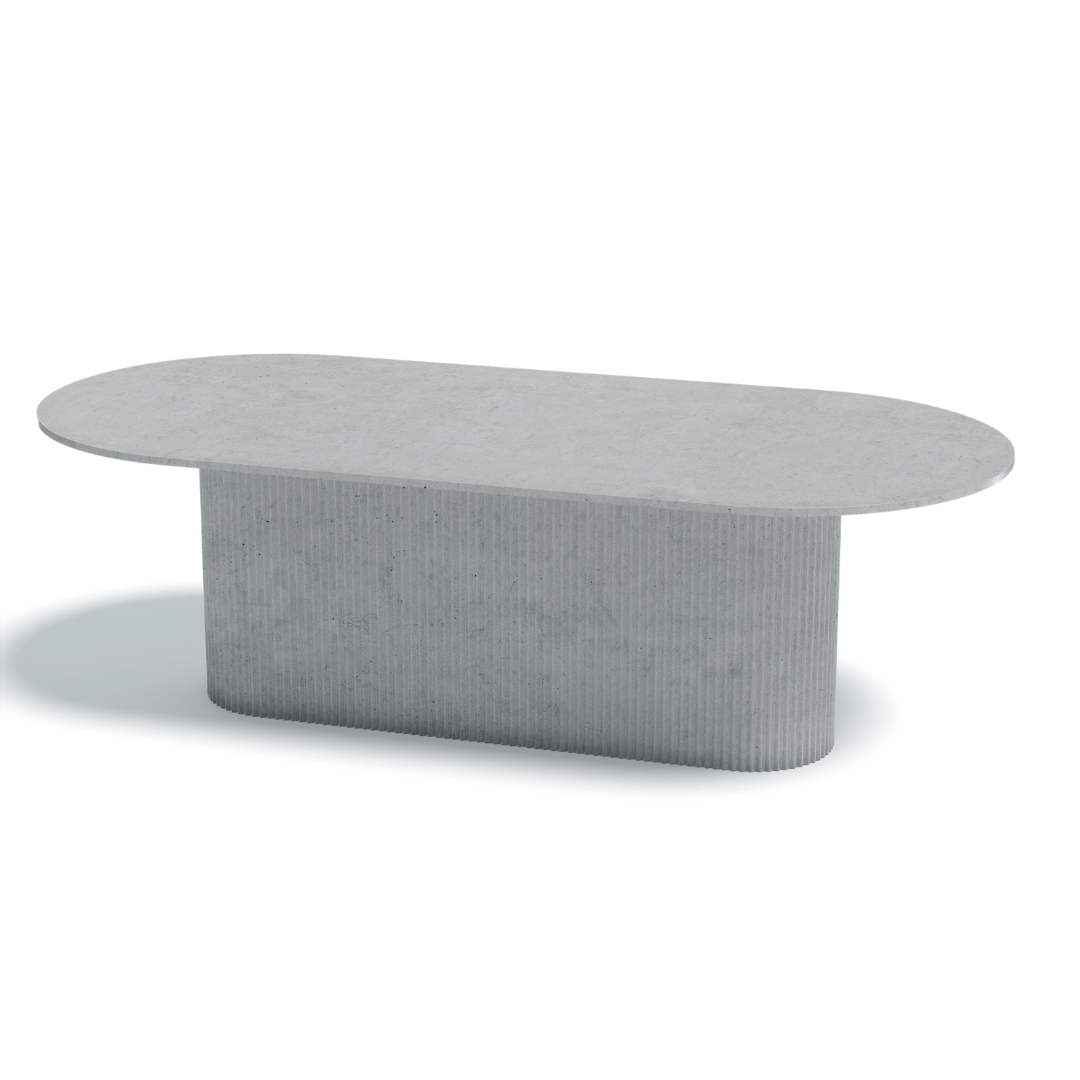 Indoor or Outdoor Oval Concrete Dining Table - Fluted Single Concrete Base