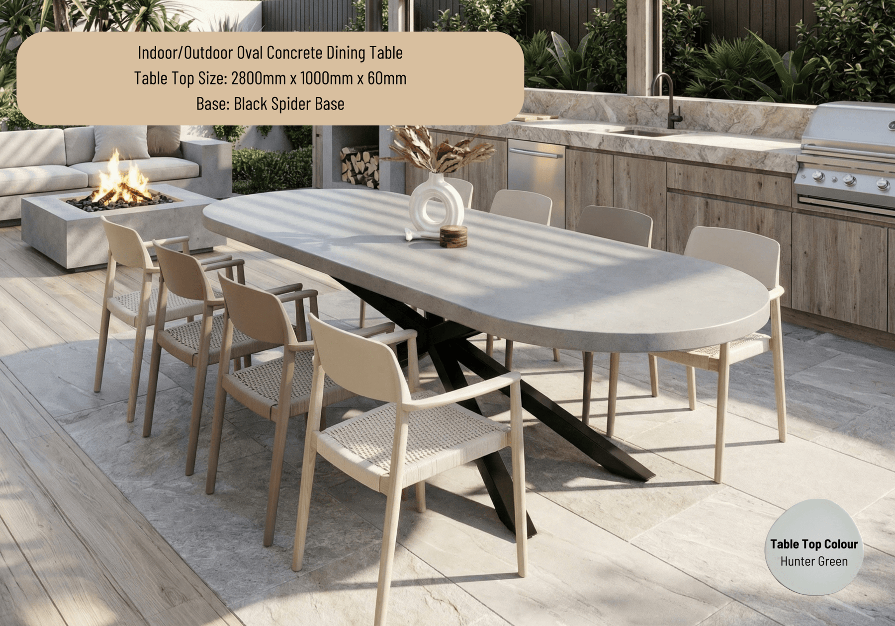 Indoor or Outdoor Oval Concrete Dining Table - Black or White Spider Base
