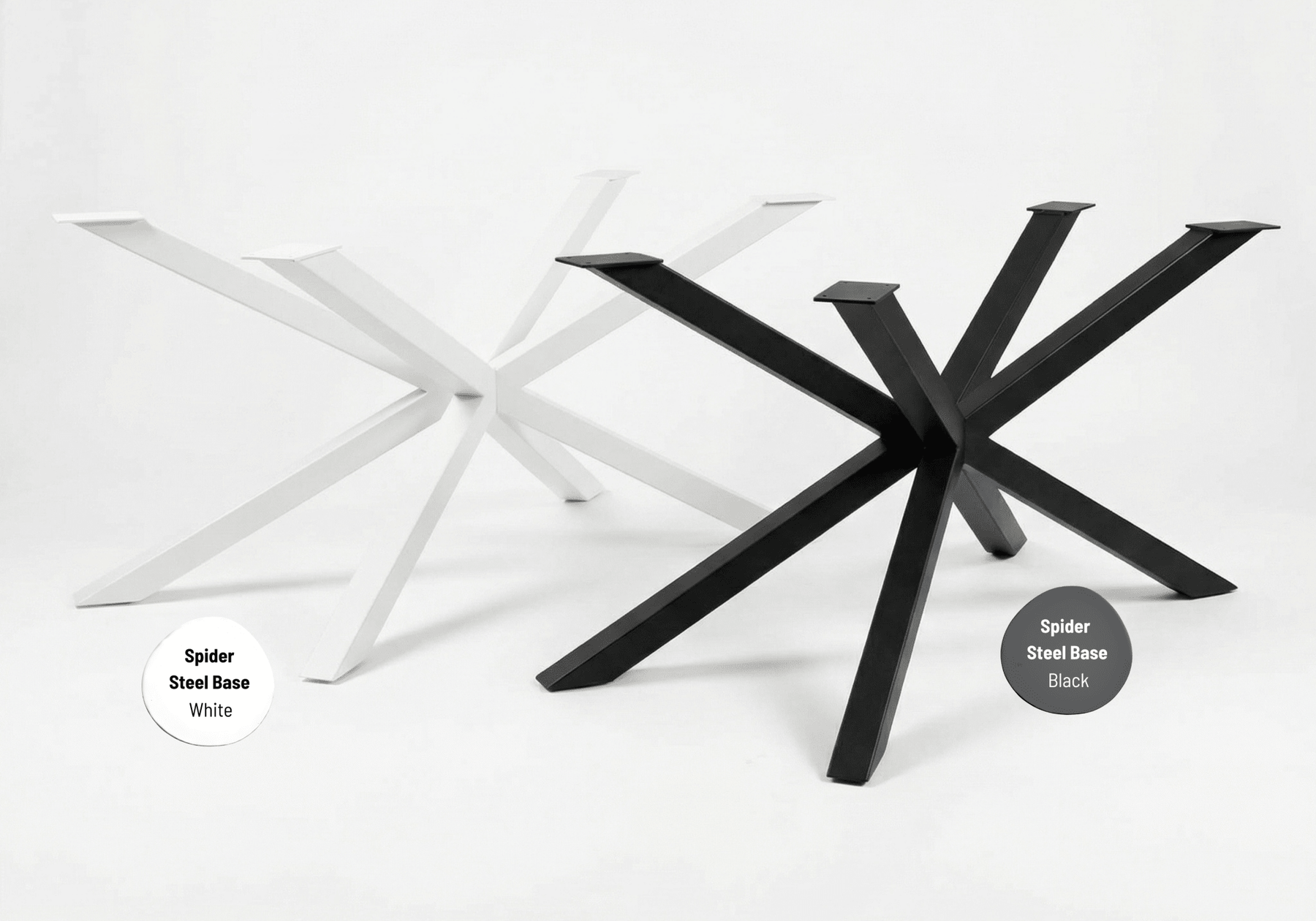 The soft, continuous curve of the oval tabletop creates an inviting and balanced presence, encouraging connection while introducing a sense of ease to the overall silhouette. Beneath it, the spider base offers a striking contrast — a network of clean, angular steel lines that radiate outward, forming a bold and architectural foundation.