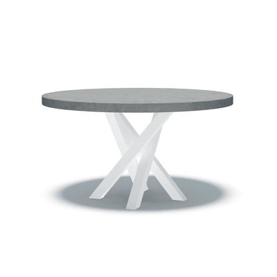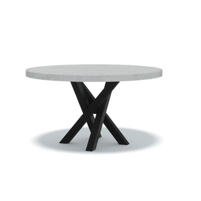 Regular price $3,000.00 Save Liquid error (snippets/product-template line 160): Computation results in '-Infinity'%Showcasing our Indoor/Outdoor Round Concrete Dining Table Top paired with our Black or White Powder Coated Steel Entwined Base.