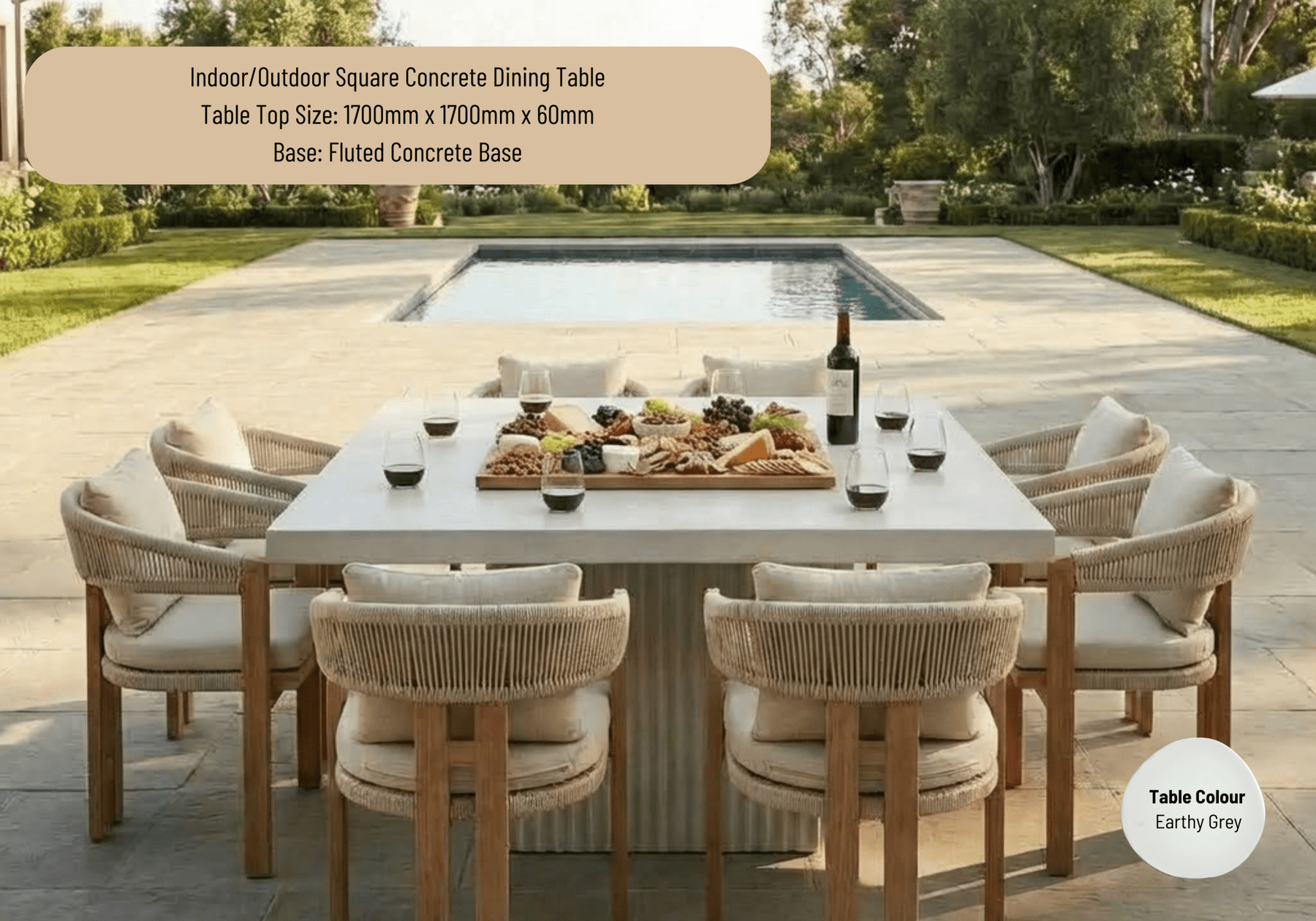 Indoor or Outdoor Square Concrete Dining Table - Fluted Concrete Base