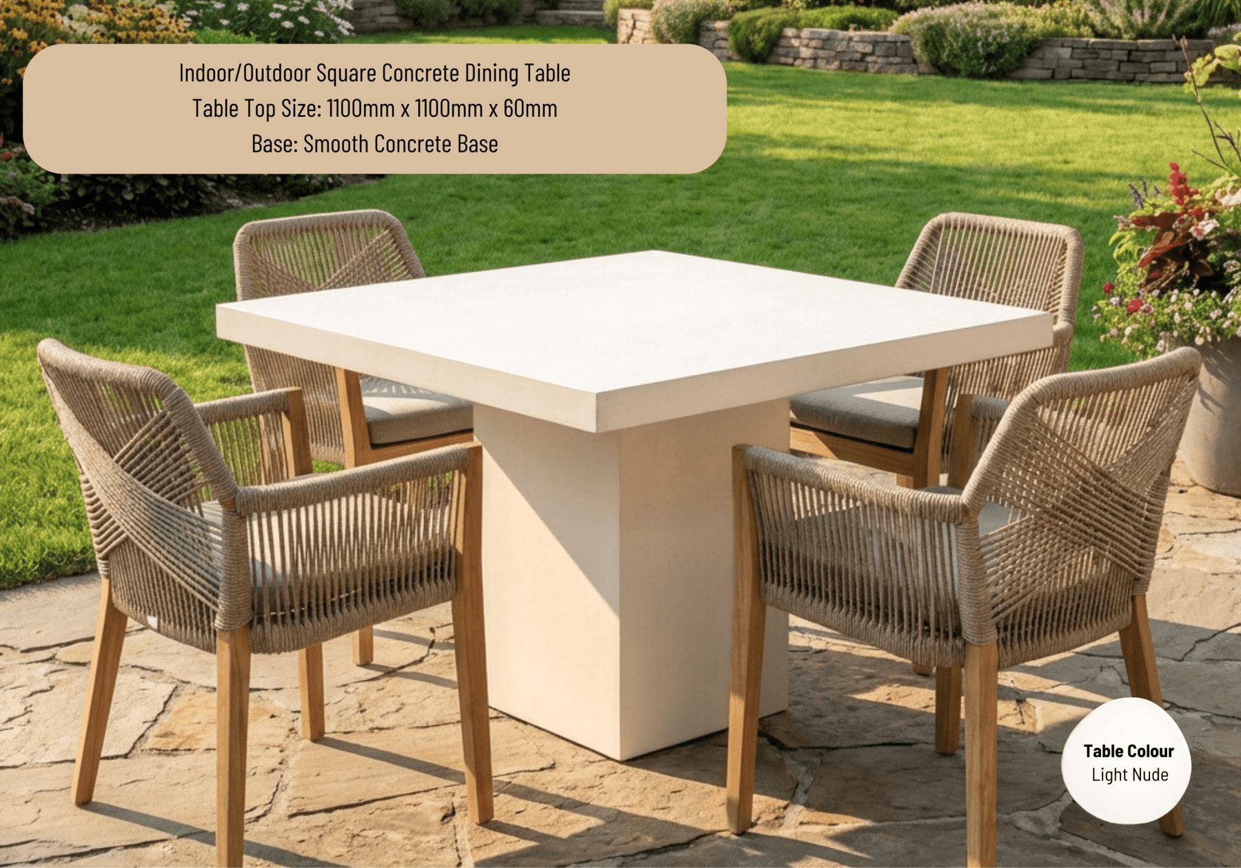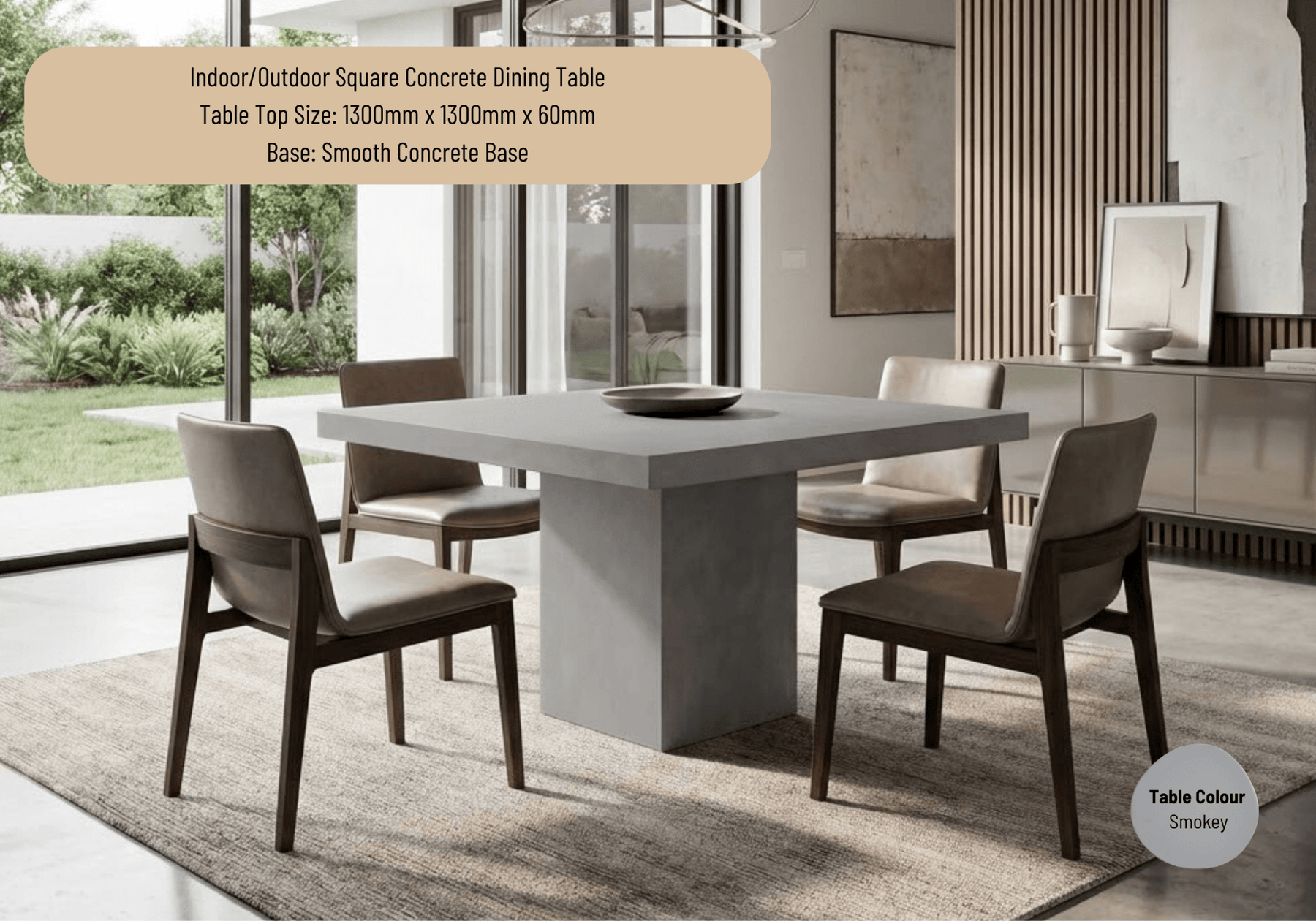 Indoor or Outdoor Square Concrete Dining Table - Smooth Concrete Base