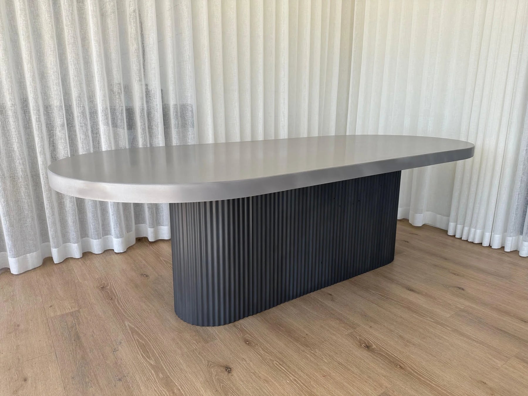 Indoor/Outdoor Oval Concrete Dining Table - Fluted Single Concrete Base