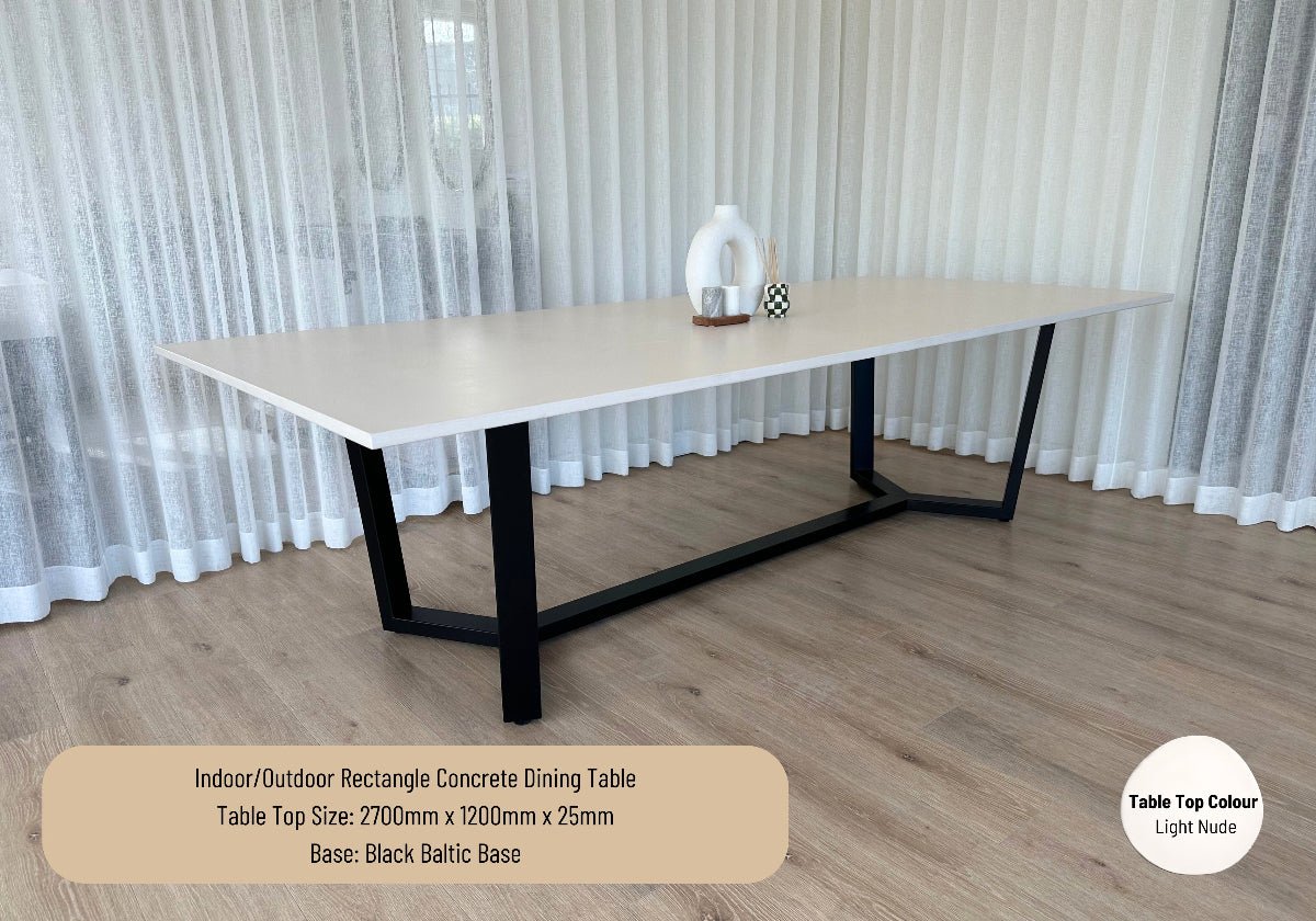 Indoor or Outdoor Rectangle Concrete Dining Table - Black or White Baltic Base