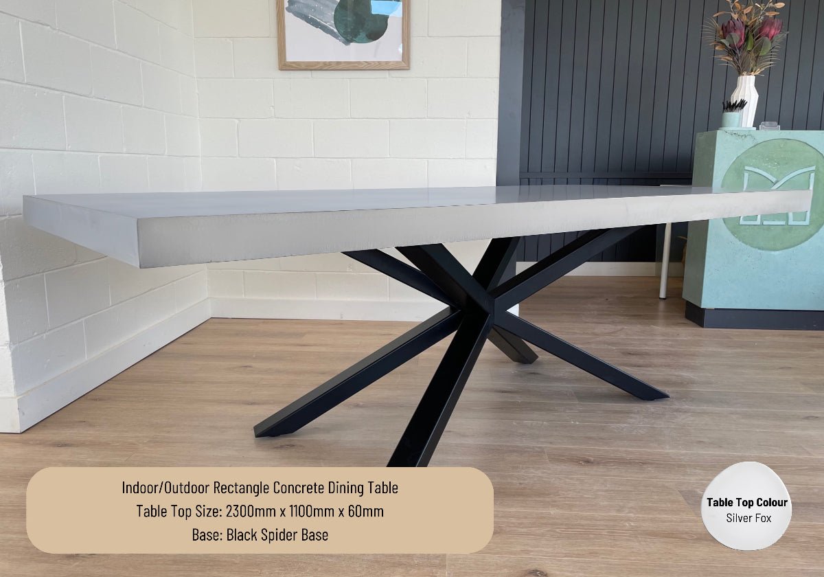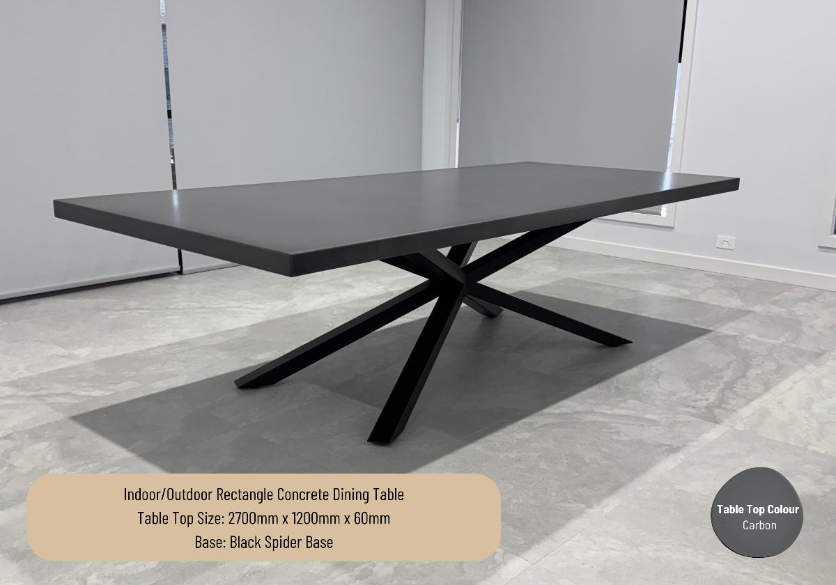 Indoor or Outdoor Rectangle Concrete Dining Table - Black or White Spider Base